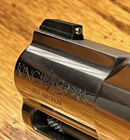The serrated sight blade is made in the Improved Ramp pattern to give a sharper, blacker sight image, yet still be good for holster carry in modern good quality gun leather.